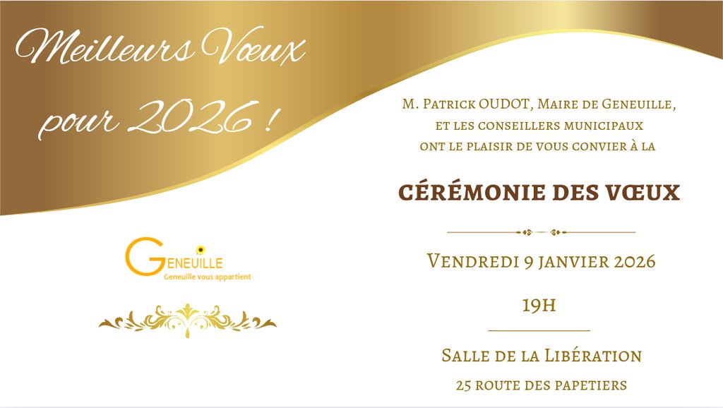Nous avons déposé, ou allons le faire, votre bulletin municipal dans vos boîtes aux lettres, accompagné du calendrier de collecte des déchets et d'une invitation à la dernière cérémonie des vœux présidée par M. Oudot.